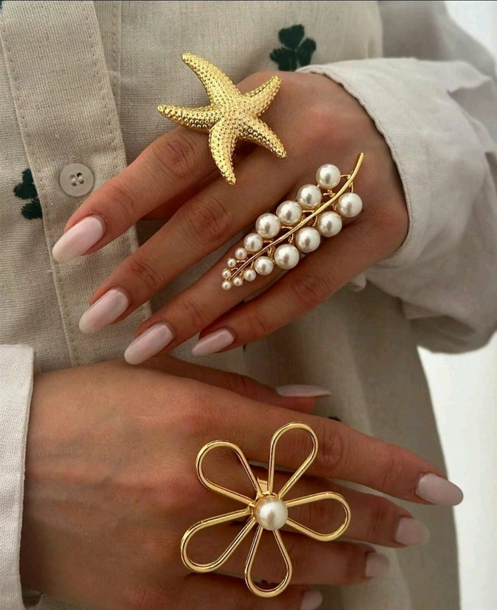 legant Open Rings with Faux Pearls Handmade Party Wear Finger Jewellery Trendy Personality Rings for Vogue Women