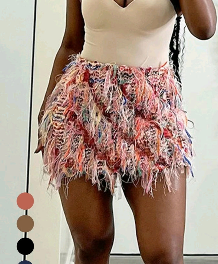 Trendy Women’s All-Over Print Fringe Bodycon Skirt – Bold, Flirty, and Fashion-Forward