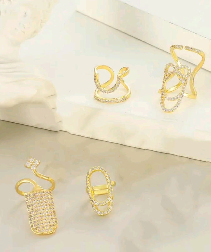 Elegant Rhinestone Decorated Cuff Rings