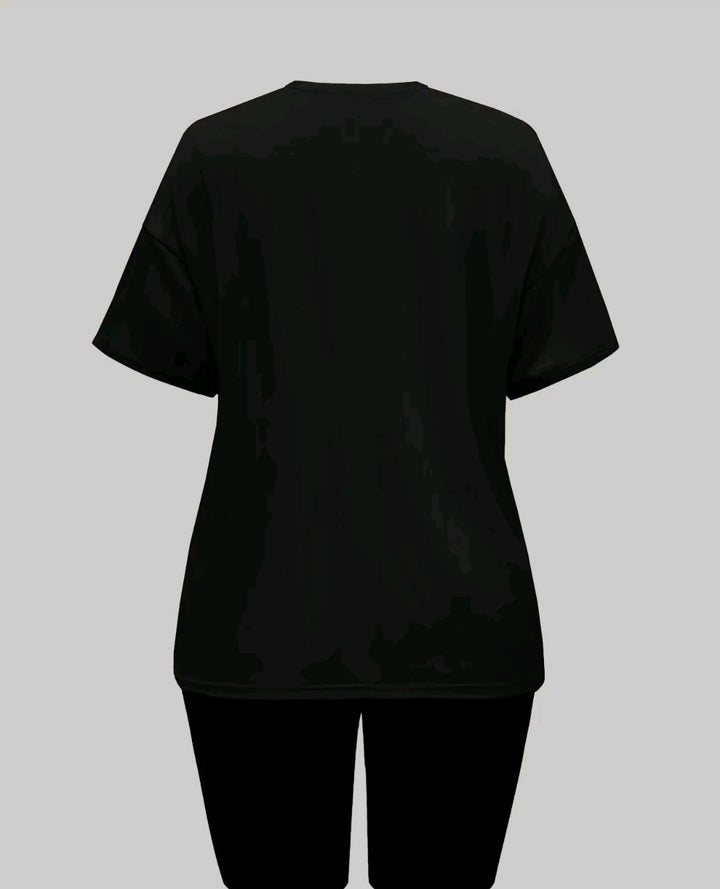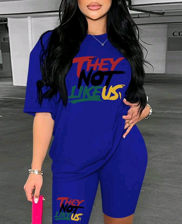 Womens Letter Print Two-Piece Set – Short Sleeve Tee and Shorts