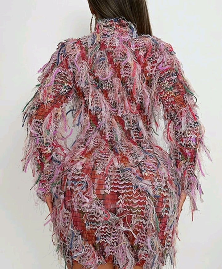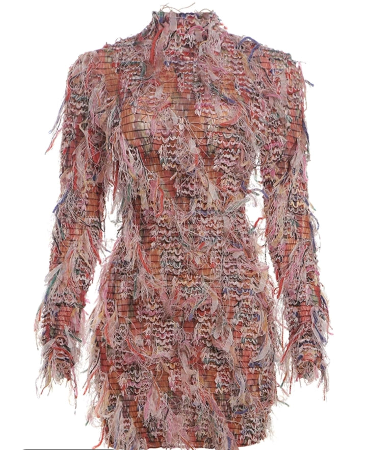 Womens Fringe Trim Bodycon Elegant Coquette Long Sleeve Dress
