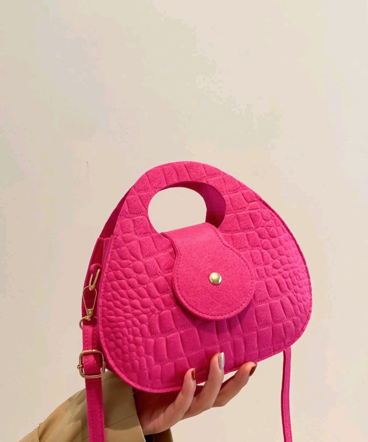 Turn heads and elevate your look with this Hot Pink Textured Mini Handbag, a bold statement piece that perfectly fuses modern design with vibrant personality. Featuring a unique semi-circular silhouette and crocodile-embossed texture, this compact yet striking handbag adds instant flair to any outfit.