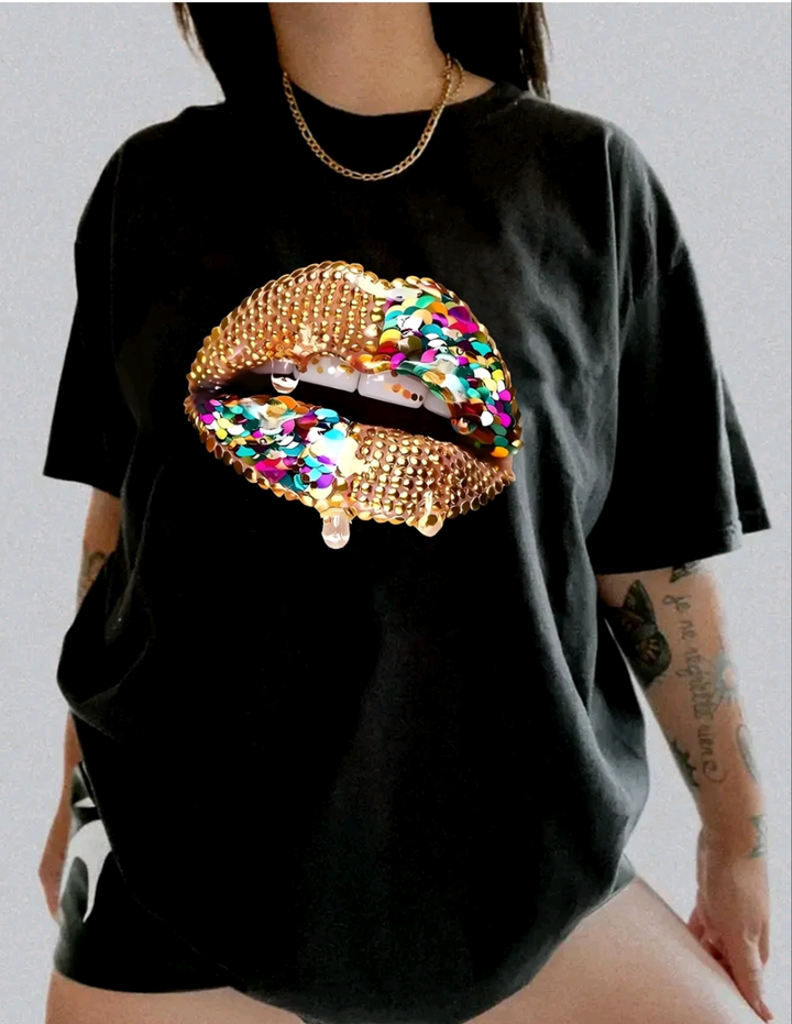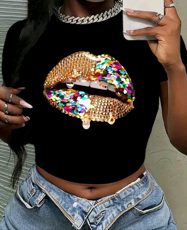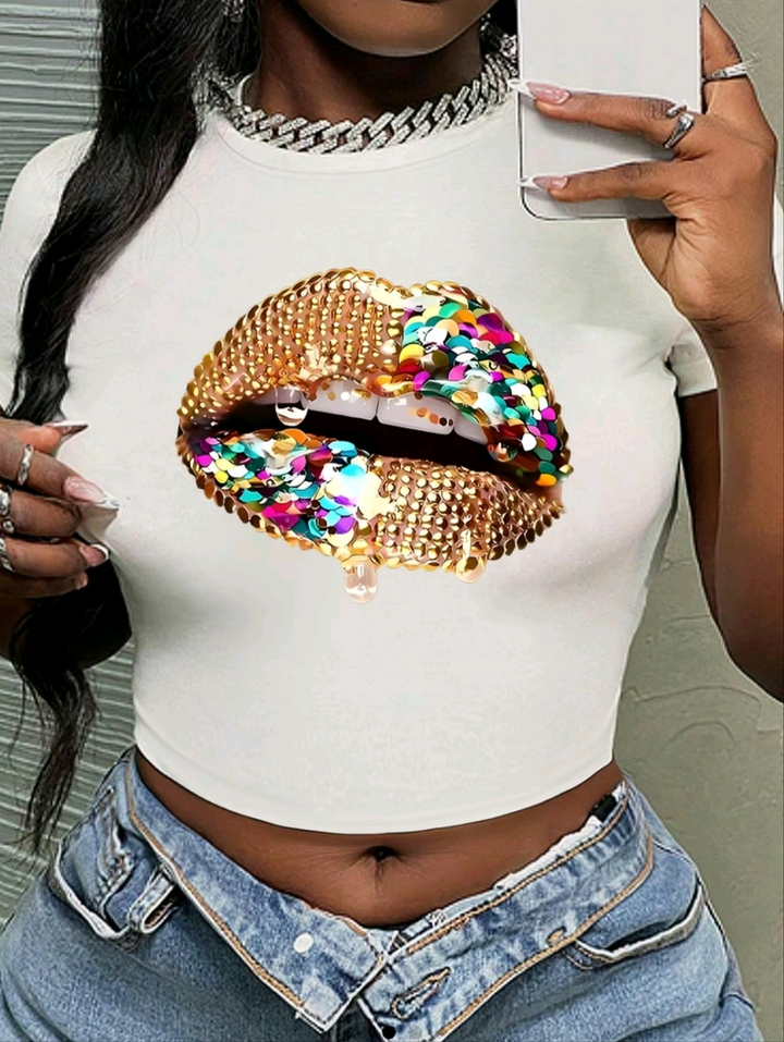 Bold, playful, and effortlessly trendy — the Women's Crop Top Lip Tee is a statement piece for the fashion-forward. Featuring a vibrant lip graphic on a flattering cropped silhouette, this tee adds a pop of personality to your casual wardrobe.